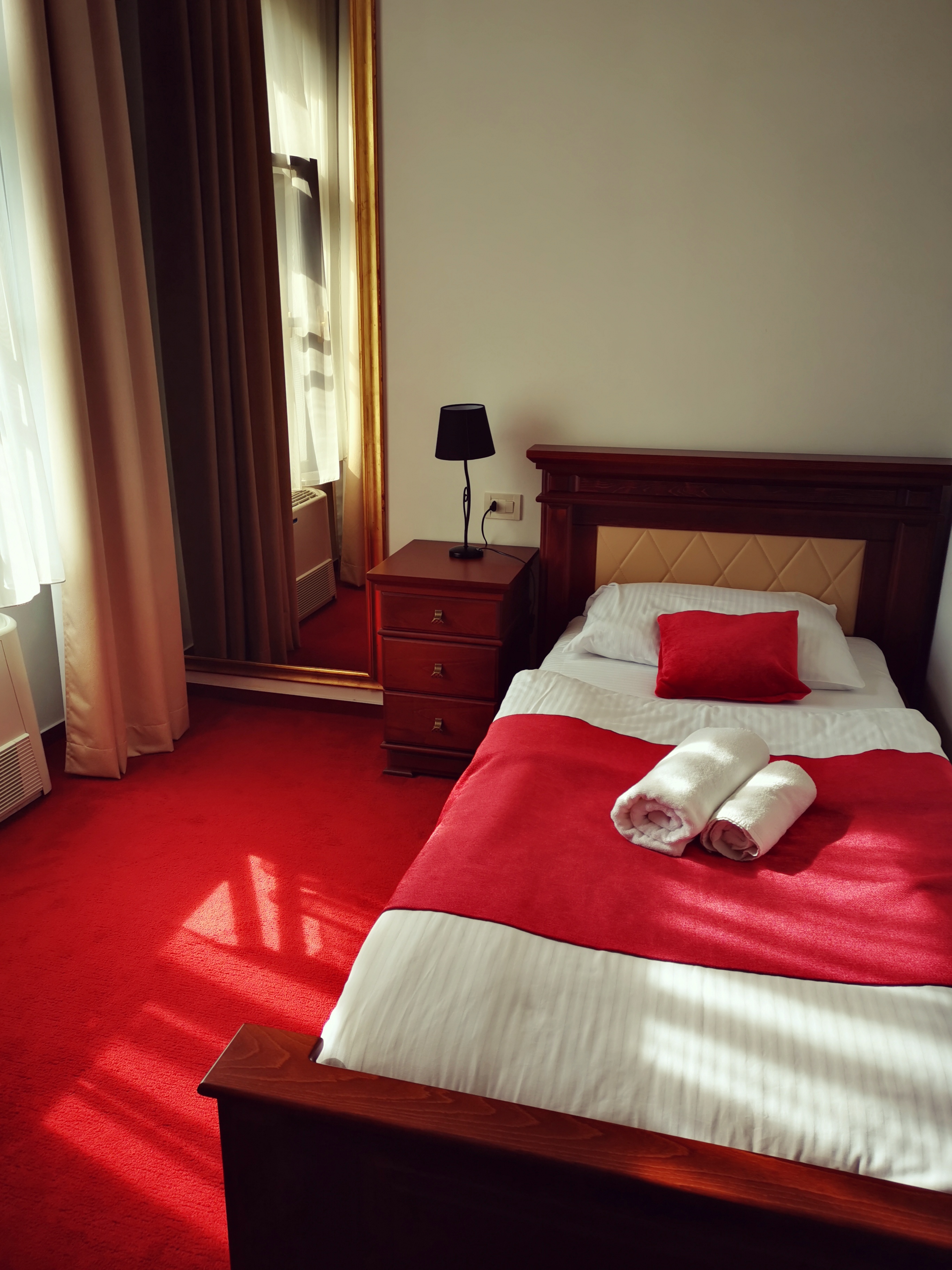 Dvorac Gjalski ima toplinu, nije prevelik, hodnici su u tepisima, ogledalima, drvetu, na zidovima slike Ksavera Šandora Gjalskog, te detalji iz njegova života. Sobe su divne. Prevladava drvo, ogledala, crveni tepisi na kojima su ispisani stihovi, mnogo lustera, raznih vrsta osvjetljenja, obiteljska soba ima odvojenu sobu sa dva kreveta za djecu. Superior soba sa king size krevetom ima ogromno ogledalo iznad uzglavlja kreveta, poseban bijeli trosjed, u svim sobama je i pisaći stol, mini bar, standardna hotelska ponuda. Cijene proizvoda u mini baru zaista nisu velike, što bih mogla reći i za sam smještaj. Cijena je primjerena sadržaju, lokaciji, izgledu, bez većih oscilacija između cijena soba.