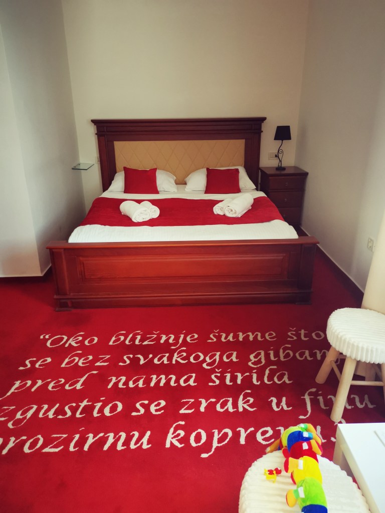 Postoji jedan dio Hrvatske u kojem, kamo god planirali, nekako završimo. Zagorje. Nisam čula da je netko tamo bio, a da nije zaljubljen. Zelenilo, urednost, baloni i zmajevi na nebu, brežuljci, toplice, bazeni, jednostavno neodoljivo. A ako nešto o Zagorju znate, to je da njegovu ljepotu nosi i veliki broj poznatih i manje poznatih dvoraca. Obzirom imam kćer od 9 godina, htjela sam joj priuštiti doživljaj buđenja u dvorcu, pa smo razmatrali između Dvorca Bežanec (u njemu sam već bila davne 2006. no ovaj put nisu uopće odgovorili na mail, a ja nemam običaj tražiti načine i moliti nekoga da mi proda svoj proizvod/uslugu, pa je na tome ostalo). Nakon ugodne komunikacije sa gospođom Gordanom iz Dvorca Gjalski, odluka je bila donešena. Ovdje moram napomenuti da sam za smještaj kontaktirala dan prije puta, što svakako ne bih preporučila za bilo koje putovanje, ali to sam ja, impulzivna i najsretnija tako. Uglavnom, soba za tročlanu obitelj nam nije odgovarala, jer je na drugom katu, a zbog zdravstvenog stanja veći broj penjanja na drugi kat u danu nam nije odgovarao i baš kad sam htjela odustat, ponuđena nam je druga opcija: moguć je smješaj u obiteljskoj sobi za četiri osobe na prvom katu, no ta je soba slobodna za prvu noć, za drugu bi nam mogli ponuditi u drugoj sobi, također na prvom katu, no ta je superiore sa king size krevetom. Moguća je bila opcija dodatnog ležaja, ali je obzirom na veličinu kreveta zaista nepotrebna. Dakle, ukoliko vam ova informacija znači iz bilo kojeg razloga, u prizemlju je recepcija i restoran, na druga dva kata smještaj, bez lifta, morat ćete stepenicama. Nama je opcija odgovarala, pa smo se sutradan uputili u Zabok – od centra Zaboka dvorac je udaljen, prema karti, oko 2,7 km, odnosno 4 minute automobilom.